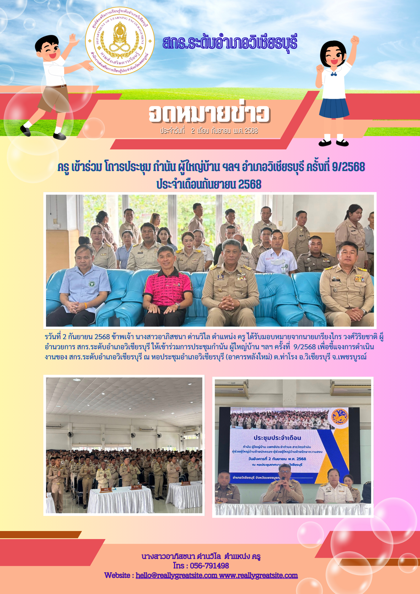 ครู เข้าร่วมประชุมกำนัน ผู้ใหญ่บ้าน ฯ เดือนกันยายน ครั้งที่ 9/2568